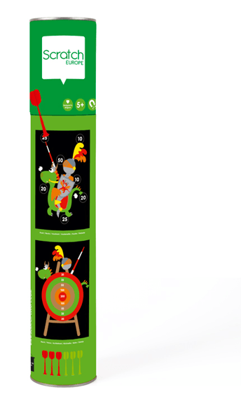 Rzutki magnetyczne dostarczą malcowi mnóstwo frajdy! Zestaw składa się z dwustronnej tarczy ozdobionej ilustracjami przedstawiającymi rycerza na smoku, a także sześciu lotek z zaokrąglonymi końcówkami, które gwarantują bezpieczną zabawę. Po skończonej grze tarczę można schować do przeznaczonej dla niej tuby.