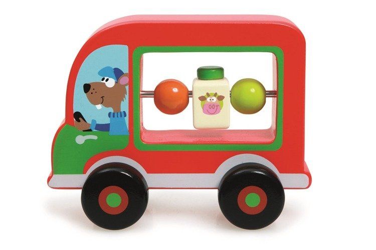 Samochodzik Miś stanie się nieodłącznym towarzyszem pierwszych zabaw Twojego dziecka. Sympatyczny miś-kierowca przewozi karton mleka i kolorowe kulki, które brzdąc może obracać. Zabawka jest wykonana z trwałych materiałów, dzięki czemu będzie służyła malcowi przez długi czas.