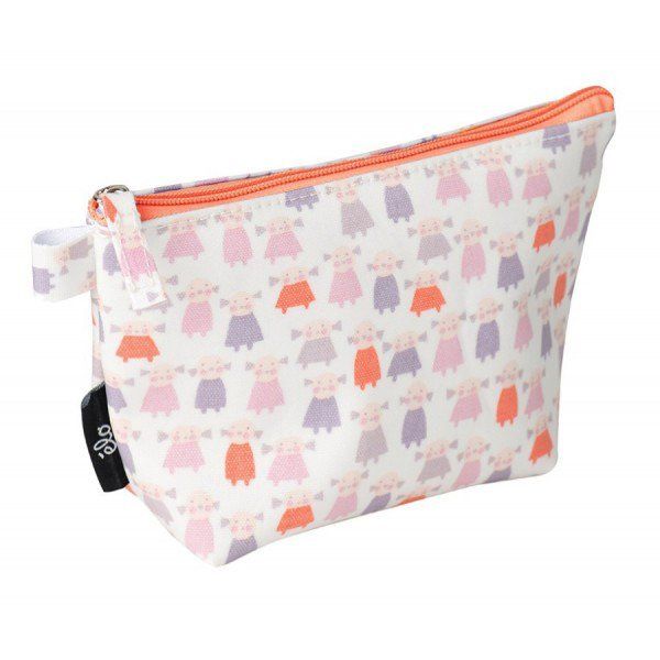 Saszetka została wykonana z bawełny i pokryta bardzo trwałym i odpornym materiałem EVA. Kosmetyczka utrzymana jest w przyjemnych dla oka kolorach, znajdują się na niej grafiki z kolorowymi, uroczymi lalkami.