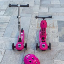 Highwaykick 1 to innowacyjna hulajnoga z siedziskiem, która za pomocą jednego guzika, może zmienić pojazd w hulajnogę na kołach – i to w kilka sekund! Wysokość siedziska można regulować, a jego najniższa pozycja – 22,5 cm – sprawdzi się podczas stawiania pierwszych kroków. Hulajnoga jest niesamowicie stabilna i komfortowa. Wyposażona została w system safety-pad, czyli specjalną szeroką podkładkę, umieszczoną na dole przedniej części, która zapobiega przewracaniu się i utykaniu kół.
