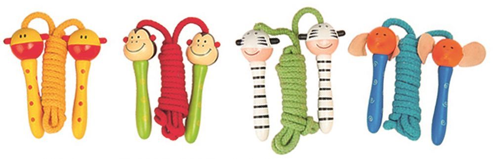Skakanka Safari to gwarancja wielu godzin wspaniałej zabawy na świeżym powietrzu! Zabawka dostępna jest w czterech wesołych wariantach. Są to: zebra, żyrafa, słonik oraz małpka. Rękojeści zostały wykonane z lakierowanego drewna, dzięki czemu całość jest bardzo wytrzymała!