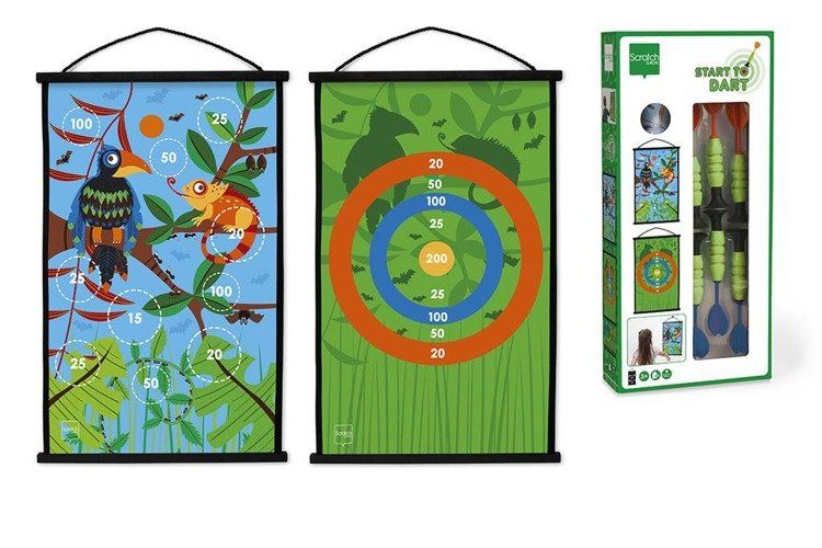 START TO DART – rzutki Dżungla z Tukanami Scratch to gra w rzutki w wersji dla najmłodszych! W zestawie znajduje się dwustronna tarcza z motywem dżungli oraz 6 rzutek z gumowymi przyssawkami. Dzięki takiemu rozwiązaniu zabawa będzie bezpieczna nawet dla najmłodszych.