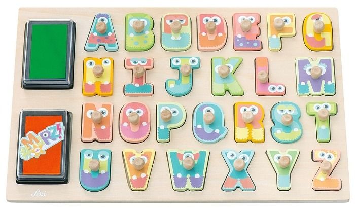 Zestaw składa się z 26 literek, z których każda ma swoje miejsce w specjalnej podstawce. Zapewnia to bezpieczeństwo, że Maluch nie pogubi kosmicznych elementów. Dwie poduszki z tuszem zapewnią godziny dobrego, dziecięcego… przybijania i tworzenia nowych lub znanych już dziecku słów.