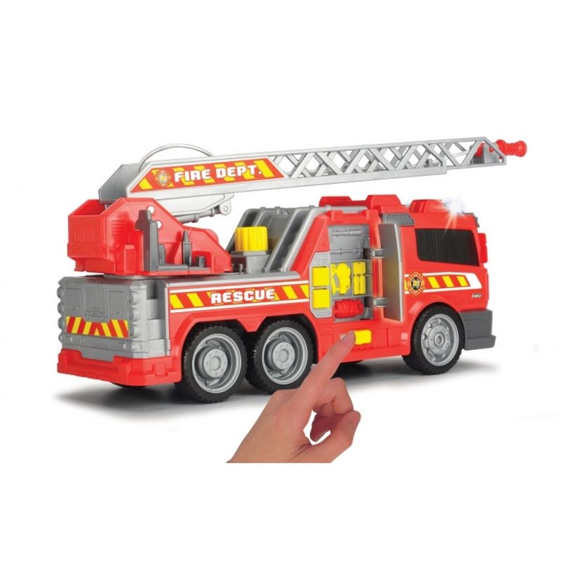 Wóz Fire Fighter spodoba się każdemu dziecku, które chciałoby kiedyś wziąć udział w strażackiej akcji. Pojazd został wyposażony w otwierany schowek ze sprzętem strażackim oraz armatkę wodną. Funkcje dźwiękowe – klakson, syrenę, odgłos pracy silnika – można uruchomić przez wciśnięcie odpowiednych guziczków. Realistyczny efekt wzmacniają migoczące światła na dachu i z przodu pojazdu. Zabawka jest zasilana dwoma bateriami 1,5V R6 (w zestawie).