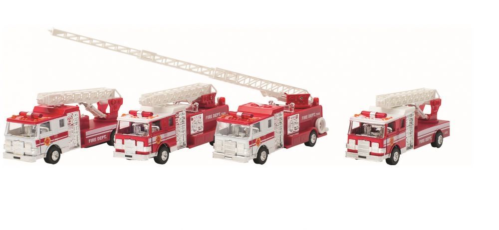 Straż Pożarna z dźwiękiem i światłem to pojazd, który z całą pewnością przypadnie go gustu każdemu dziecku! Służby ratunkowe oraz ich pojazdy pędzące na sygnale to często obiekt podziwu oraz zainteresowań maluchów. Od teraz każdy z nich może mieć własny wóz strażacki i wcielić się w rolę bohaterskiego strażaka. Modele Goki występują w 4 wariantach: z białą kabiną i wężem, z białą kabiną, z czerwoną kabiną i wężem, z czerwoną kabiną. Każdy z wariantów został wykonany z dbałością o szczegóły – przednie drzwi otwierają się, a teleskopowa drabina naprawdę się rozsuwa!