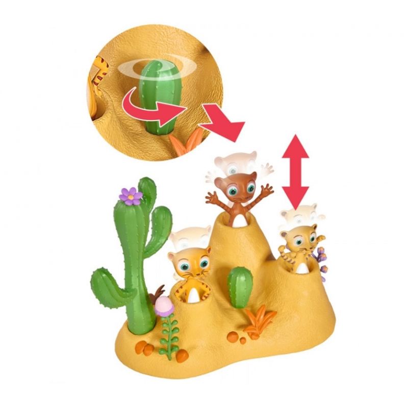 Zestaw Świat pustyni Wissper zapewni szkrabowi godziny fantastycznej zabawy! W opakowaniu dziecko znajdzie wydmę piaskową z trzema norkami, figurki Monty’ego oraz jego przyjaciół, a także ubranko i nakrycie głowy dla lalki Wissper (23 cm). Zwierzątka chowają się do norki i wyskakują z niej – jedyne, co trzeba zrobić, to przekręcić kaktus!