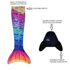 Syreni ogon – monopłetwa do pływania Star Kuaki to produkt, który spełni dziecięce marzenia o byciu syreną! Design produktu sprawia, że ogon wygląda bardzo realistycznie – widnieją na nim łuski, połyskujące kolory oraz efekt 3D. Produkt jest solidny oraz wygodny – został wyprodukowany w Hiszpanii z Lycra Xtra Life – materiał ten gwarantuje świetne przyleganie oraz komfort użytkowania, jest odporny na sól morską oraz chlor.