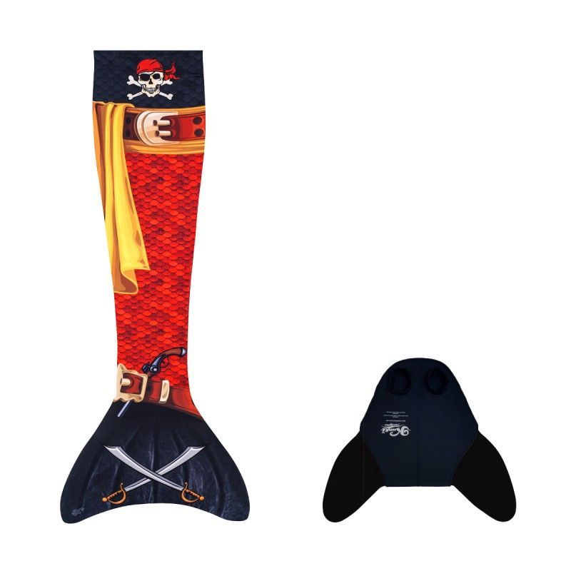 Syreni ogon Pirat – monopłetwa do pływania Kuaki to produkt, który spełni dziecięce marzenia o byciu syreną lub piratem! W tej wersji kolorystycznej spodoba się wszystkim chłopcom – ogon ozdobiono pirackim motywem. Produkt jest solidny oraz wygodny – został wyprodukowany w Hiszpanii z Lycra Xtra Life – materiał ten gwarantuje świetne przyleganie oraz komfort użytkowania, jest odporny na sól morską oraz chlor.