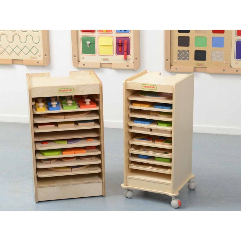 Solidnie wykonana szafeczka do przechowywania tabliczek edukacyjnych będzie się fantastycznie prezentować w pokoju brzdąca. Mebel świetnie sprawdza się także jako stolik – na jego szczycie znajduje się blat, na którym szkrab może położyć wybraną przez siebie tabliczkę. Szafka pomaga nauczyć malca dbania o posiadane przedmioty i utrzymywania porządku.