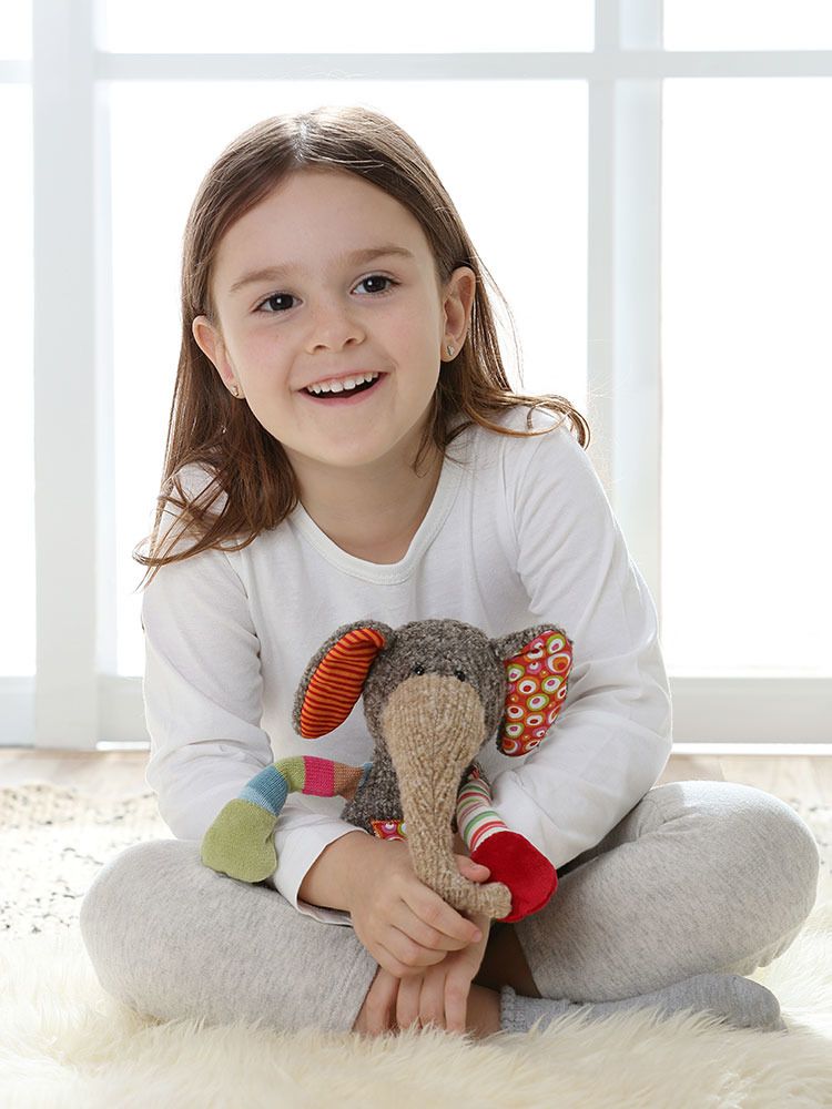 Zabawa ze słonikiem daje dziecku poczucie bezpieczeństwa. Wystarczy, że przytuli się do zabawki, a wszystko co złe i niedobre od razu odejdzie w niepamięć. Przytulanka pomaga też wzbudzić w maluchu ciekawość świata. Skrawki materiału, z których uszyto słonika, cechują się różną fakturą, co zachęca do poznawania różnych bodźców dotykowych.