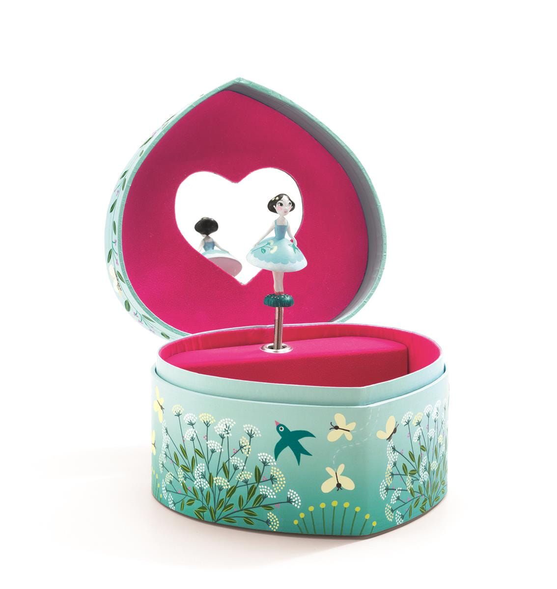 Muzyczne pudełko na biżuterię Zaproszenie do walca to praktyczne akcesorium, które będzie także wspaniałą ozdobą dziecięcego pokoju. Wyposażono je w lustereczko w kształcie serca oraz obracającą się figurkę tancerki. Całość ozdobiono wyjątkowymi grafikami z motywem kwiatów, ptaków i motyli. Kiedy właścicielka szkatułki uchyli jej wieczko, usłyszy melodię utworu „Zaproszenie do walca”.