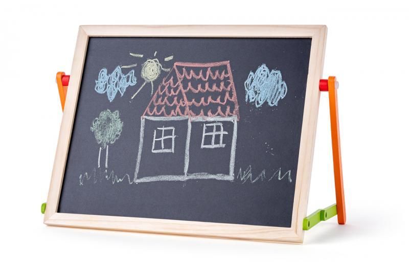 Tablica magnetyczno-kredowa Woody zachwyci każdego małego artystę oraz pomoże w nauce pisania i rysowania. Tablica posiada podpórkę, za pomocą której można ją rozłożyć w dowolnym miejscu. Z jednej strony znajduje się tablica magnetyczna, po której można pisać pisakiem; z drugiej strony umieszczono tablicę kredową.