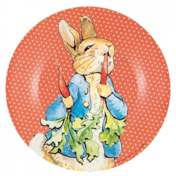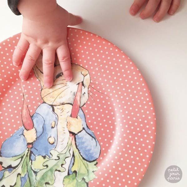 Kolorowa ilustracja z Królikiem Piotrusiem i jego przysmakiem sprawi, że Twój maluch będzie miał przy stole jeszcze więcej radości. Talerzyk można myć w zmywarce!