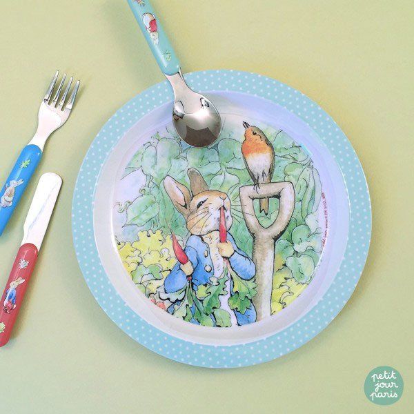 Urocza i intrygująca ilustracja z Królikiem Piotrusiem sprawi, że Twój maluch z pewnością pokocha ten talerzyk.