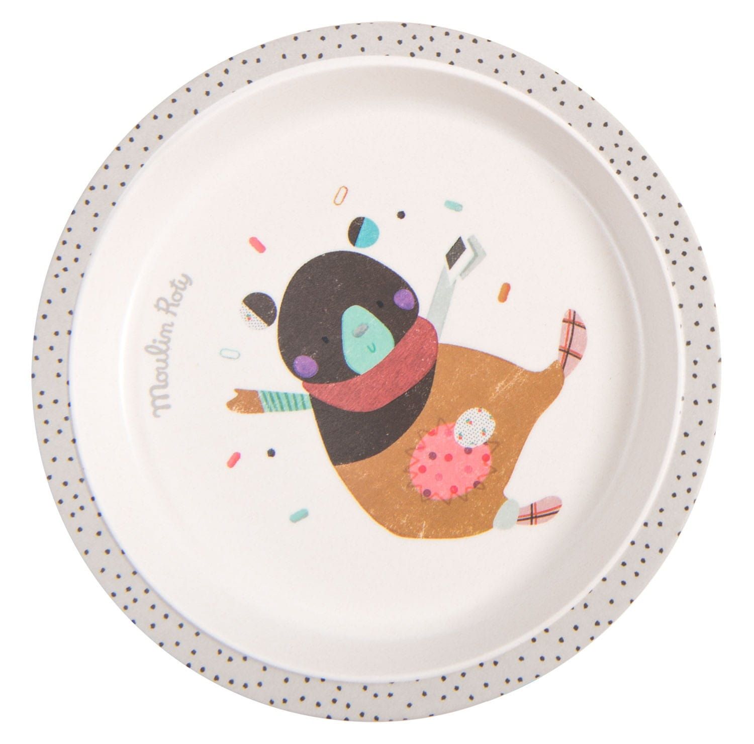 Talerzyk z ilustracją z kolekcji Jolis Trop Beaux. Przedmiot niezbędny dla dziecka do pierwszych posiłków! Lekki, bambusowy talerzyk, łatwy w obsłudze dla małych dłoni i odporny na uderzenia.