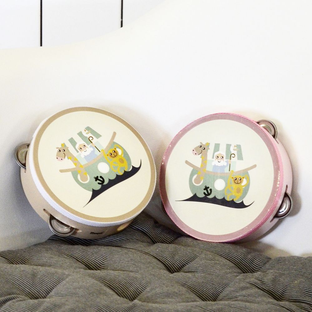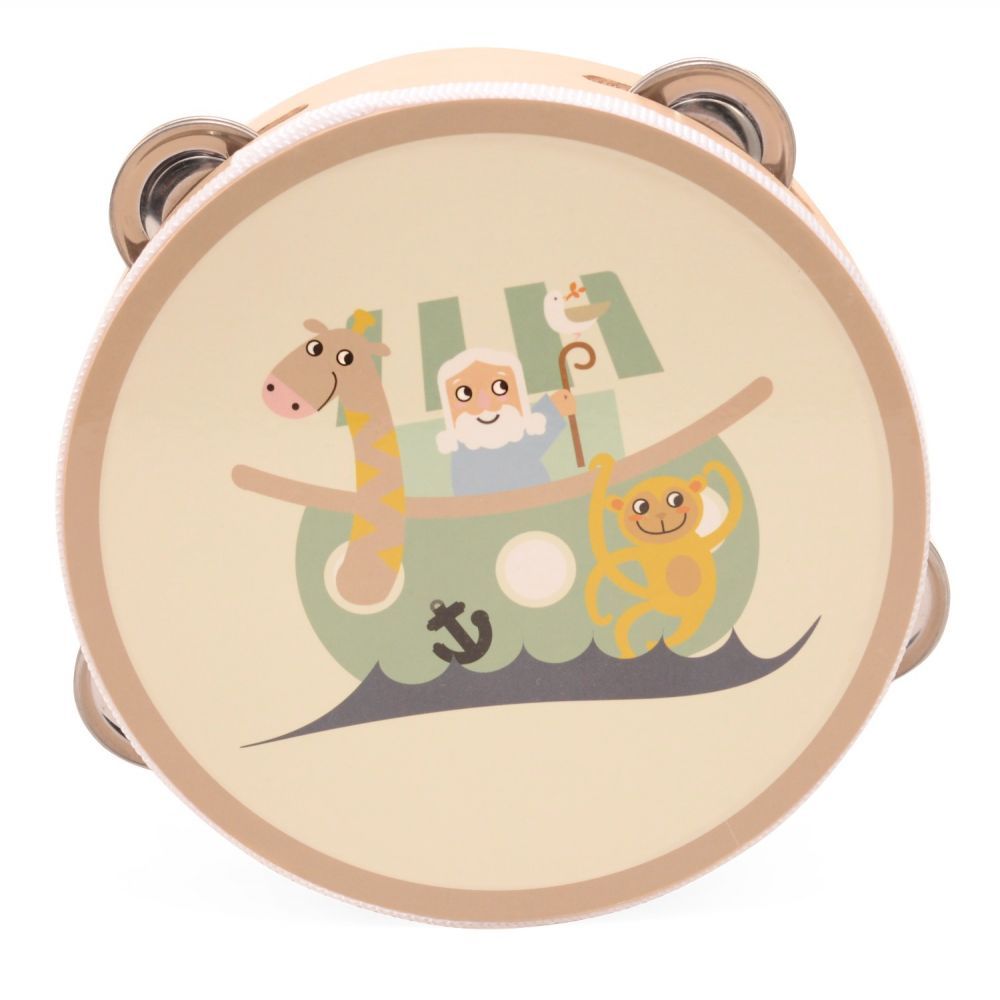 Tamburyno motyw Arki Noego Magni to bardzo prosta zabawka muzyczna, która da dziecku ogrom radości! Dzieci w pierwszych latach uwielbiają odkrywać nowe dźwięki, a najbardziej kochają te, które mogą same wytwarzać. Tamburyno wyposażono w 4 pary talerzy.