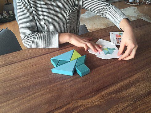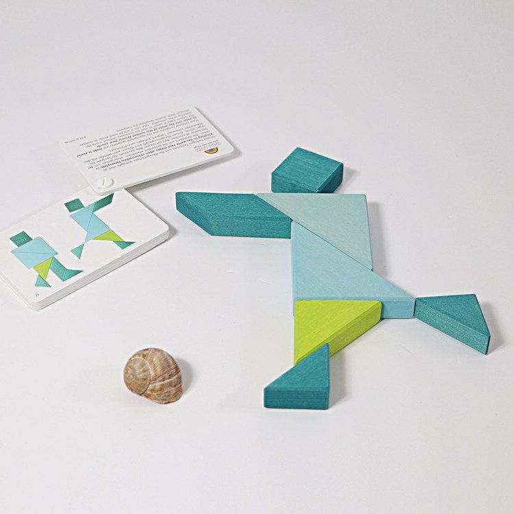 Tangram z oryginalną książeczką, niebieski, Grimm’s – doskonała zabawa