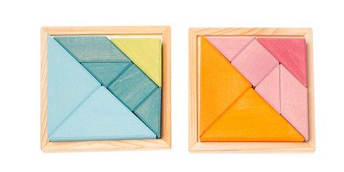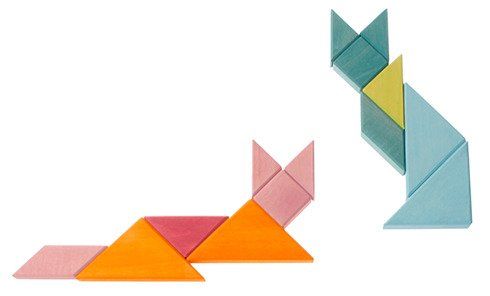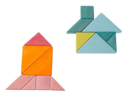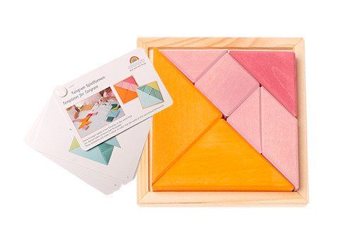 Tangram to zabawka, z którą Twój maluszek spędzi długie godziny! Zestaw składa się z podstawki i pomarańczowo-różowych klocków, które można układać na wiele sposobów. Do zabawki dołączona jest książeczka, dzięki której Twoja pociecha będzie mogła wypróbować różne konfiguracje układanki. Elementy można także wykorzystać do tworzenia innych konstrukcji z klocków Grimm’s.