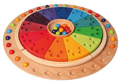 Tarcza miesięczna 35 kolorowych drewnianych kulek, Grimm’s – śliczna dekoracja i zabawa w jednym