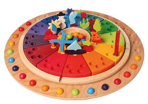 Drewniana tarcza to zestaw ruchomych klocków wykonanych z drewna bukowego, zawierających otwory kompatybilne z dekoracyjnymi kulkami, figurkami i świeczkami Grimm’s. Elementy można dowolnie układać i ozdabiać, tworząc piękny, obrazkowy kalendarz! Pozwól Twojemu dziecku samodzielnie wkładać kulki w wyznaczone otwory. Będzie to świetne ćwiczenie wspomagające koncentrację, precyzję ruchów oraz motorykę małą, odpowiedzialną za sprawność dłoni i palców.