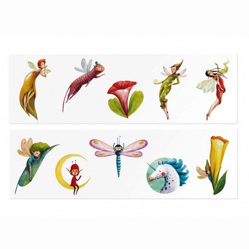 Tatuaże dla dzieci – wróżki to 10 sztuk tatuaży, które są całkowicie bezpieczne dla skóry oraz łatwe w użyciu. Wystarczy lekko zwilżyć wzór wodą, a on przyklei się do skóry. Do zmycia również wystarczy tylko woda. Są nietoksyczne, przeszły wszelkie testy bezpieczeństwa obowiązujące w UE.