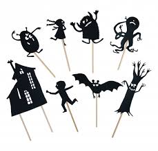 Zestaw zawiera 8 różnych postaci lub potworków. Elementy wykonane są z bardzo grubego czarnego kartonu i osadzone na drewnianych patyczkach. Postacie po zgaszeniu światła i zapaleniu lampki rzucają cień na ścianę. Dzięki temu wspólnie z dzieckiem można wykreować wiele ciekawych opowieści z dreszczykiem. Cienie świecą w ciemności, co zwiększa efekt grozy! Idealne na Halloween i nie tylko!