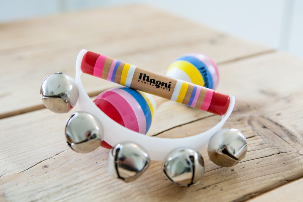 Tęczowe janczary z drewnianym uchwytem Magni to coś, co z pewnością ucieszy każdą małą muzykantkę i muzykanta. Dzieci w pierwszych latach życia uwielbiają poznawać nowe dźwięki oraz tworzyć własną muzykę, w ten sposób rozwijają zmysł słuchu oraz kształtują poczucie rytmu. Gra na instrumentach dodatkowo sprzyja rozwojowi koordynacji ruchowej.
