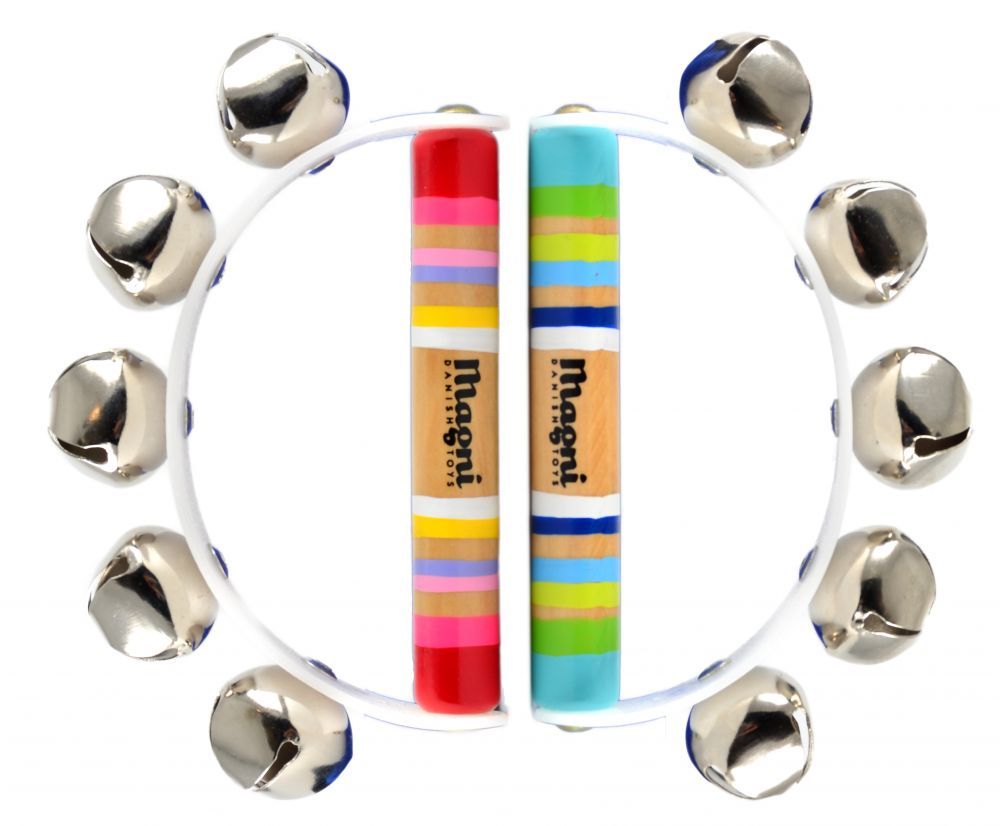 Janczary Magni to świetny instrument dla najmłodszych – mają one wygodne, kolorowe uchwyty, dzięki czemu są bardzo poręczne nawet dla małych rączek. Do wyboru są dwie wersje kolorystyczne: uchwyt w barwach czerwono-różowo-fioletowo-żółtych oraz uchwyt w barwach niebiesko-zielono-granatowo-białych. Cena dotyczy jednego instrumentu.