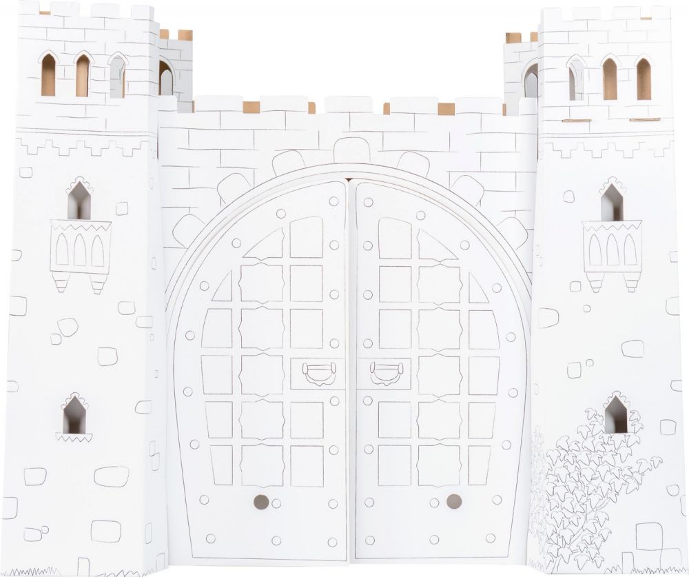 Zamek został wykonany z 5-warstwowej, białej tektury falistej, którą z łatwością się składa i maluje po niej. Co ważne, do złożenia zamku nie potrzebny jest klej ani nożyczki. Na tyle opakowania znajduje się instrukcja, jak złożyć budowle w 10 prostych krokach. To wspaniały pomysł na prezent dla wszystkich małych księżniczek i rycerzy.