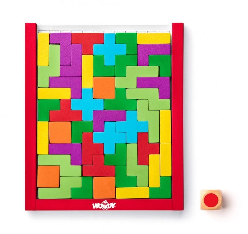 Tetris układanka puzzle Woody to produkt, który zachwyci każde dziecko (i nie tylko), zwłaszcza fanów popularnej gry Tetris. W zestawie od Woody znajduje się plansza, 48 klocków w różnych kolorach i kształtach oraz kostka do gry. Zadanie polega na tym, aby ułożyć wszystkie klocki na planszy. Wbrew pozorom to nie takie proste – zadanie to wymaga zaangażowania logicznego i kreatywnego myślenia. Można się bawić nie tylko w pojedynkę, ale także w kilka osób – wtedy gracze rzucają kostką i układają na planszy klocka o takim kolorze, jaki wskaże kostka.
