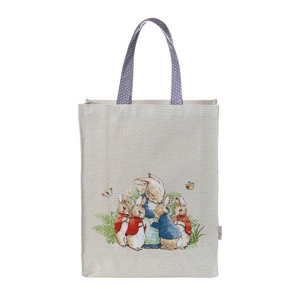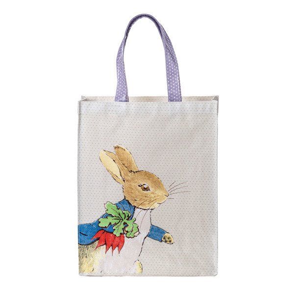 Torebka tote z Królikiem Piotrusiem doskonale sprawdzi się na zakupach. Dzięki niej już od najmłodszych lat możesz uczyć dziecko, że na zakupy należy iść z własną torbą! Produkt wykonany jest z solidnego materiału – to bawełna pokryta powłoką PVC, dzięki temu torba jest nieprzemakalna, a także łatwa w czyszczeniu. Będzie świetnym towarzyszem nie tylko na zakupach, ale także podczas wycieczek i podróży!