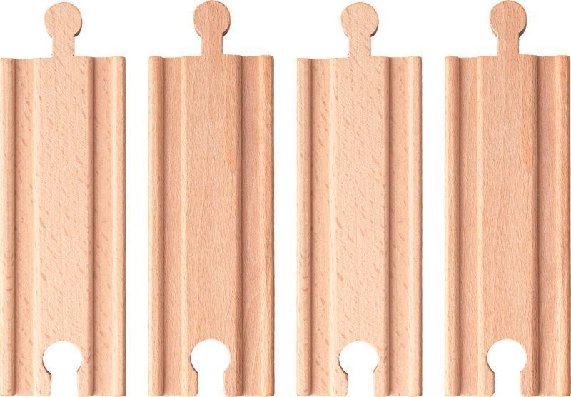 Doskonałej jakości drewniane tory pomogą Twojemu dziecku urozmaicić budowane trasy. Zestaw zawiera 4 tory, które są kompatybilne z kolejkami i akcesoriami takich marek jak: Brio, IKEA, ELC, Little Steps, Eichhorn, Woodyland, Tesco, Carousel, BigJigs Toys itp.