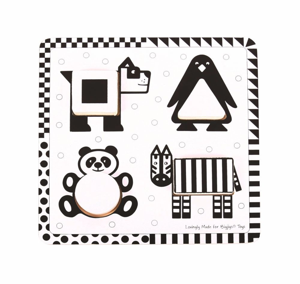 Układanka edukacyjna Black&White to zabawka przeznaczona dla najmłodszych. Nie bez przyczyny zastosowano w niej czarno-biała kolorystykę – niemowlęta nie widzą jeszcze kolorów tak wyraźnie jak w późniejszych etapach życia, dzięki zastosowaniu kontrastowych barw, elementy układanki będą dla maluchów dobrze widoczne.