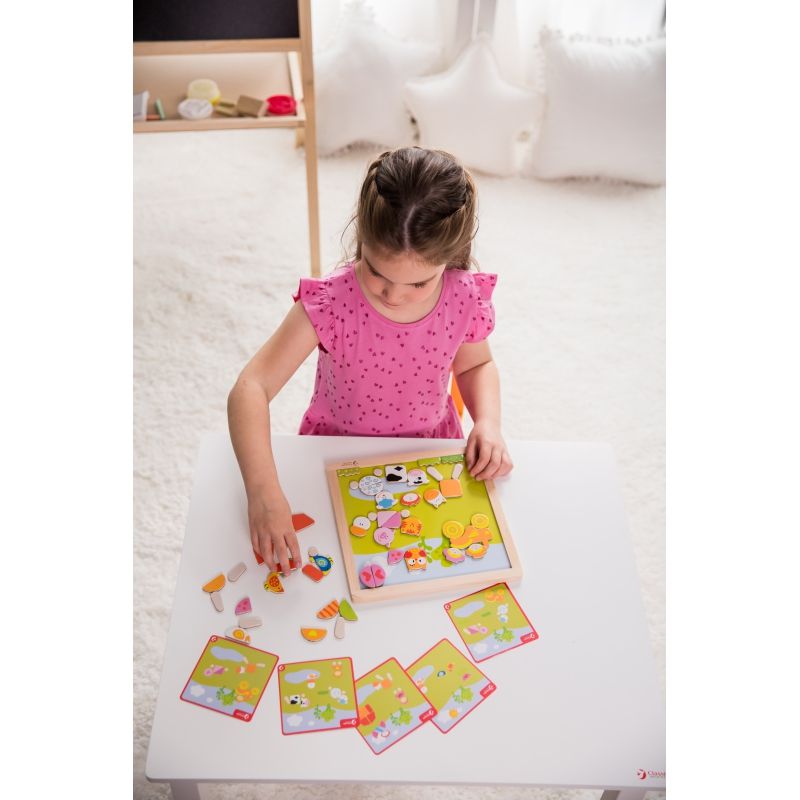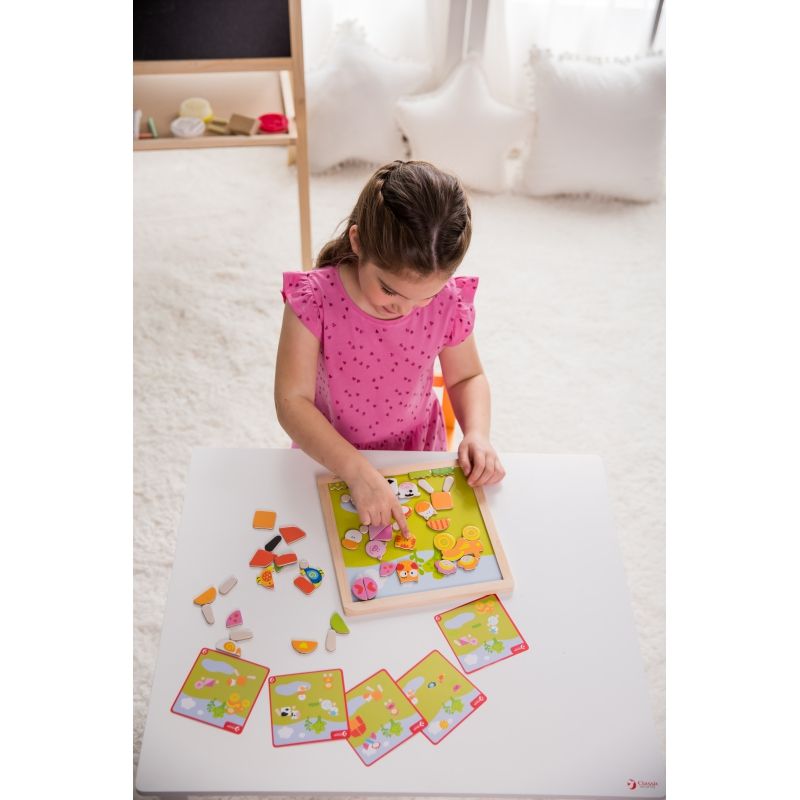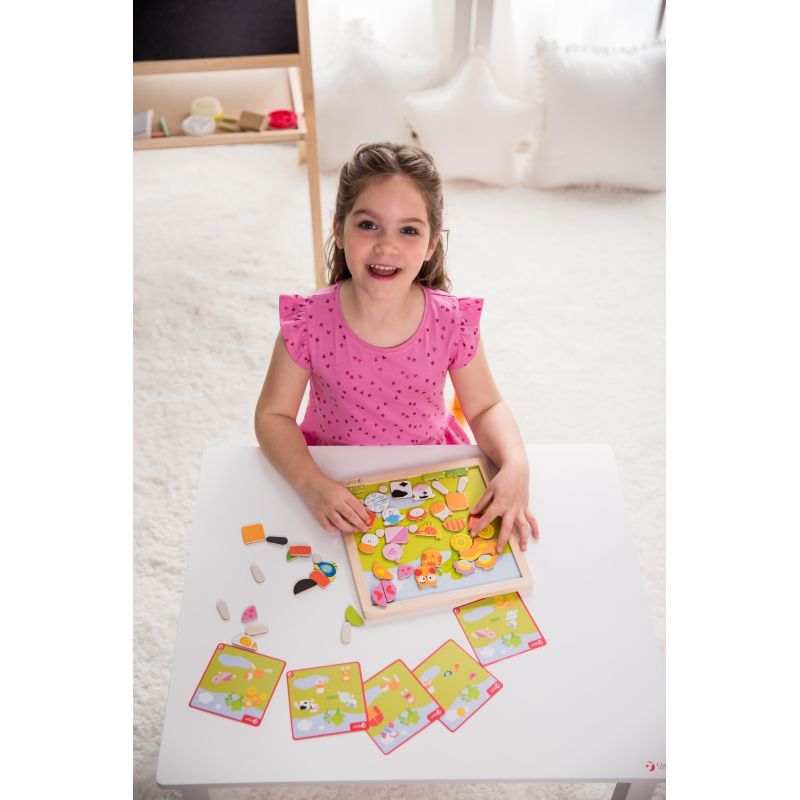 Układanka Magnetyczna Farma firmy Classic World to świetny pomysł na zabawę dla dzieci. Gra pomoże im rozwijać kreatywne myślenie oraz zdolności manualne. Zadaniem Twojego malucha będzie ułożenie klocków z wizerunkiem zwierzątek z farmy na odpowiednich miejscach na planszy.