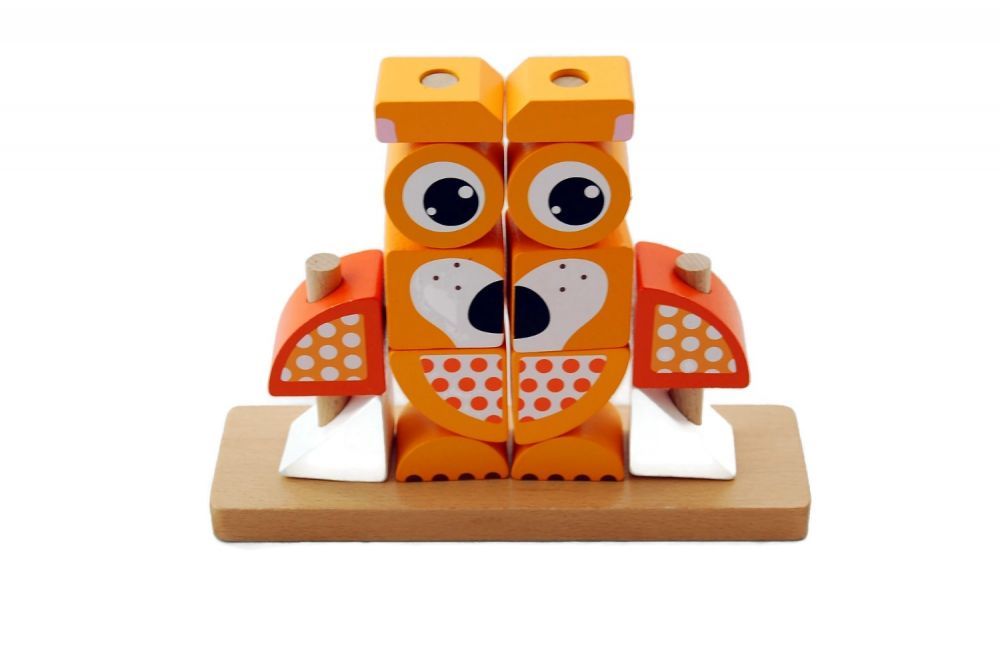 Układanka na palikach Piesek AdamToys to klocki, które przypadną do gustu dzieciom w różnym wieku. Maluchy mogą za ich pomocą ćwiczyć umiejętność chwytania oraz koordynację poprzez trafianie klockiem na palik, a odrobinkę starsze dzieci mogą układać z klocków wymyślne konstrukcje własnego autorstwa lub odwzorowywać te z instrukcji. Klocki posiadają nadruki, co sprawia, że są one bardzo atrakcyjne i pozwalają na ułożenie różnych zwierzątek i nie tylko.
