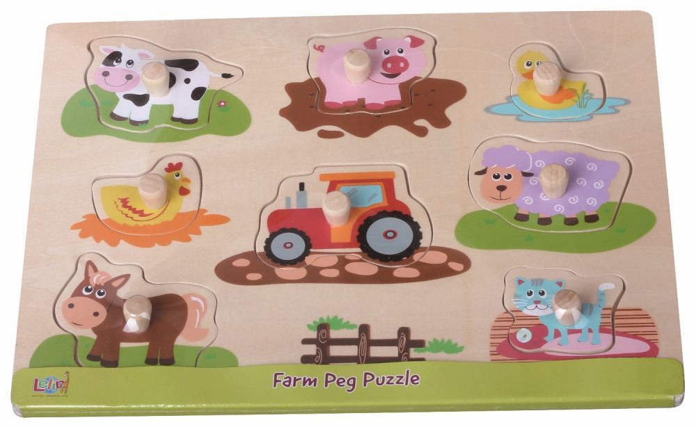 Układanka Przyjaciele z farmy to gwarancja wesołej zabawy dla każdego miłośnika łamigłówek. Produkt składa się z 8 drewnianych elementów (7 zwierzątek oraz traktor). Całość charakteryzuje się wesołym designem, który pobudza wyobraźnię oraz przyciąga uwagę. Ilustracje utrzymano w żywych kolorach, dzięki czemu podczas zabawy panuje radosna atmosfera.