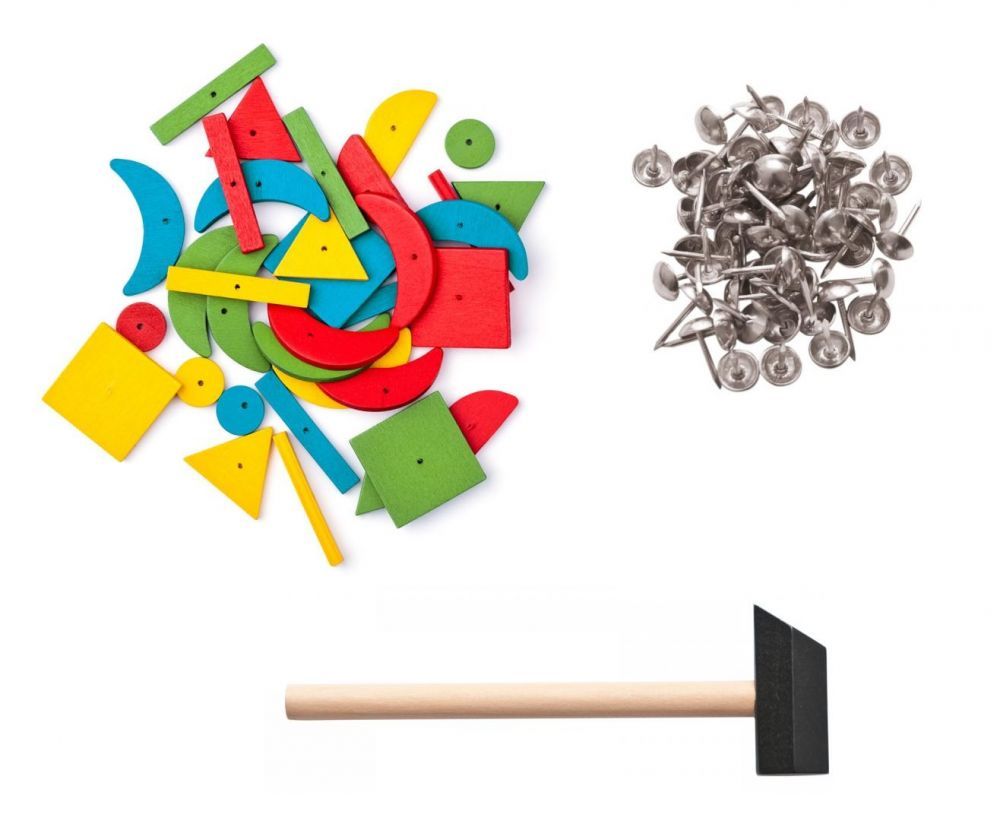 Zabawa z przybijanką, oprócz ćwiczenia zdolności manualnych oraz rozwijania wyobraźni, pozwala także na naukę rozpoznawania kształtów i posługiwania się narzędziami. Zestaw doskonale nadaje się na prezent.