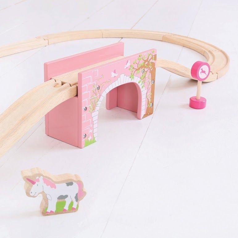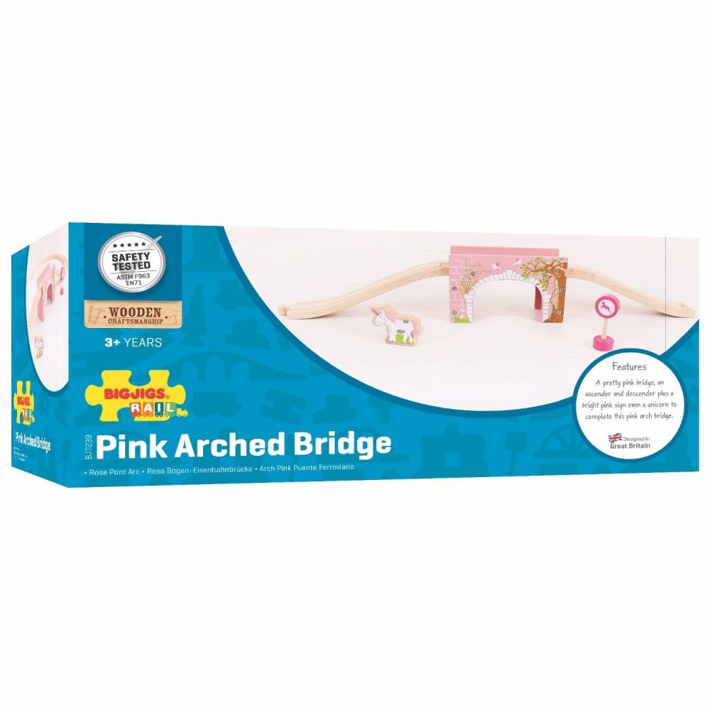 Wiadukt kolejowy różowy BigjigsRail do rozbudowy kolejki drewnianej spodoba się wszystkim małym miłośniczkom zabawy kolejką. To element, który jeszcze bardziej uatrakcyjni zabawę. Drewniany wiadukt został pięknie wykończony, zadbano o każdy szczegół. Materiał, z którego wykonano produkt jest ekologiczny, nietoksyczny i bardzo trwały – przetrwa długie lata zabawy.