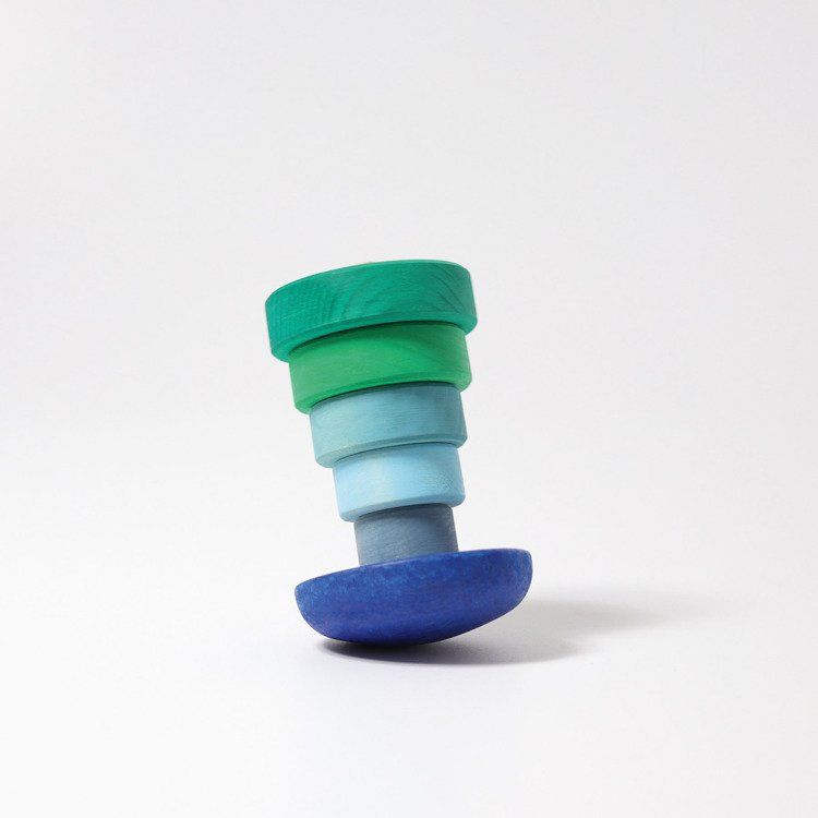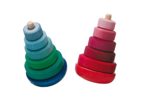 Stożkowa, niebieska wieża składa się z 5 krążków oraz podstawki, wykonanych z drewna lipowego, wykończonego nietoksycznymi bejcami na bazie wody. Dokładanie krążków na patyczek to ponadczasowa zabawa, którą wiele osób kojarzy z własnego dzieciństwa. Układanie wieży z pewnością zachwyci także Twojego maluszka!