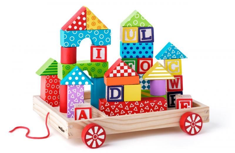Wózek i klocki zrobiono z drewna – dzięki temu zabawka jest bardzo solidna. Produkt doskonale sprawdzi się w roli prezentu.