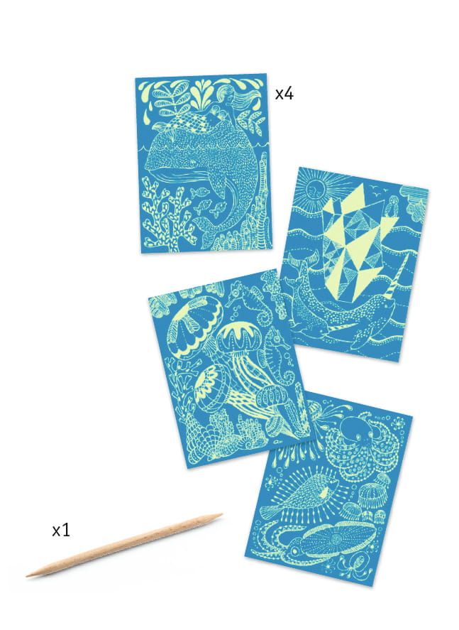 Załączonym rysikiem należy zdrapywać według instrukcji kolejne fragmenty ilustracji, a otrzymamy 4 piękne obrazki świecące w ciemnościach. Zestaw zawiera: 4 obrazki do zdrapania, 1 patyczek do zdrapywania i książeczkę z podpowiedziami krok po kroku.