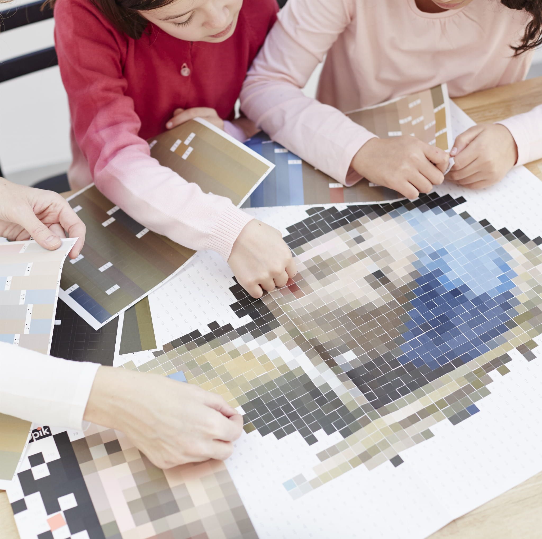 Plakat podzielony jest na małe kwadraciki (piksele). Każdy kwadracik jest ponumerowany i odpowiada danemu kolorowi naklejek. Zadaniem dziecka jest wyklejenie wszystkich kwadracików na plakacie. Wówczas stworzy obraz, który można oprawić i powiesić w pokoju.