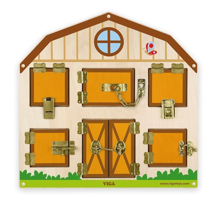 Przedstawiamy unikalną zabawkę sensoryczną, którą rodzic może przywiesić na ścianę, na przykład nad łóżeczkiem niemowlaka i zapewnić mu wspaniałą zabawę. Małe dzieci są ciekawe świata, przez co uwielbiają otwierać i zamykać różne przedmioty, aby dowiedzieć się, co kryje się w środku. Stodoła posiada 6 par drzwiczek zamykanych na różne sposoby, które skrywają za sobą inne obrazki. Dziecko musi włożyć trochę wysiłku w ich otworzenie, ale jego ciekawość zostanie zaspokojona kolorowymi postaciami zwierząt, traktora oraz stogów siana.