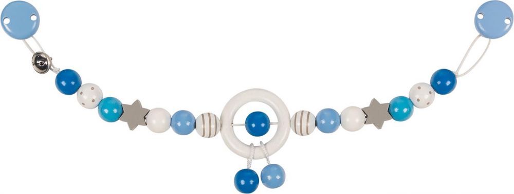 Zawieszka do wózka niebiesko-biała Heimess to produkt, który pokocha każdy maluszek. Zawieszka służy do zamocowania przy wózku, posiada ona specjalne klipsy z dwóch stron dzięki czemu można ją rozwiesić nad maluszkiem. Urocza kolorystyka oraz koraliki w kształcie gwiazdek sprawiają, że zawieszka będzie pięknym dodatkiem dla dziecka. Koraliki można obracać i chwytać – czynność ta pomoże dziecku w ćwiczeniu sprawności rączek. Zachętą do zabawy będzie dzwoneczek oraz to, że koraliki będą się delikatnie poruszały podczas spacerków.
