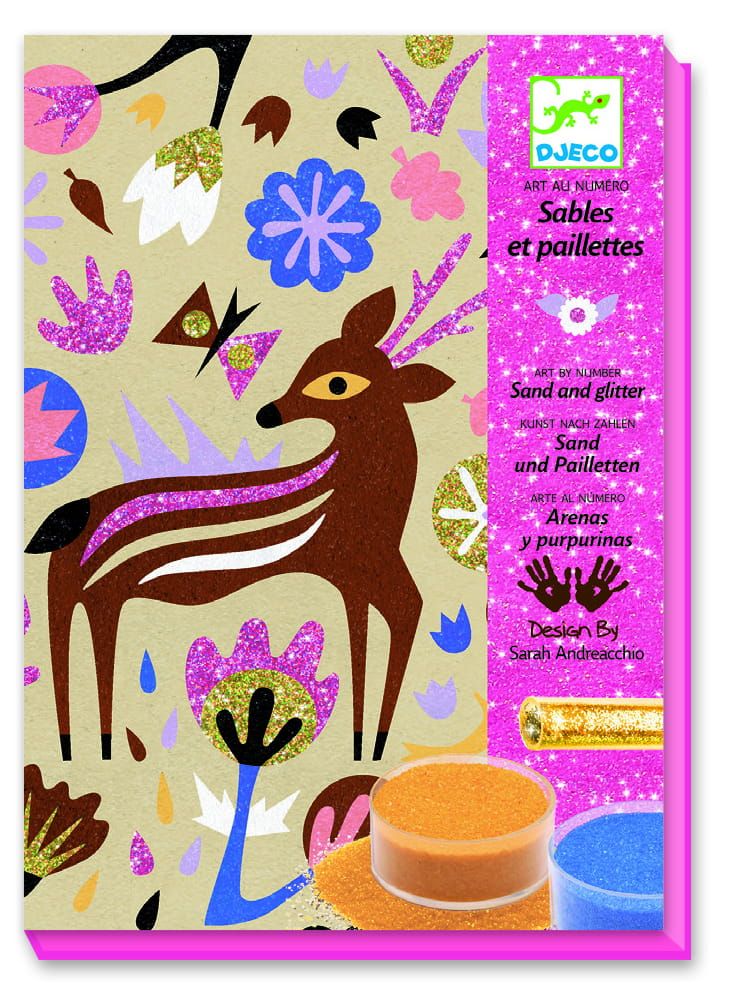 Zestaw artystyczny z piaskiem i brokatem Leśny świat Djeco dla dzieci od 6 r.ż.