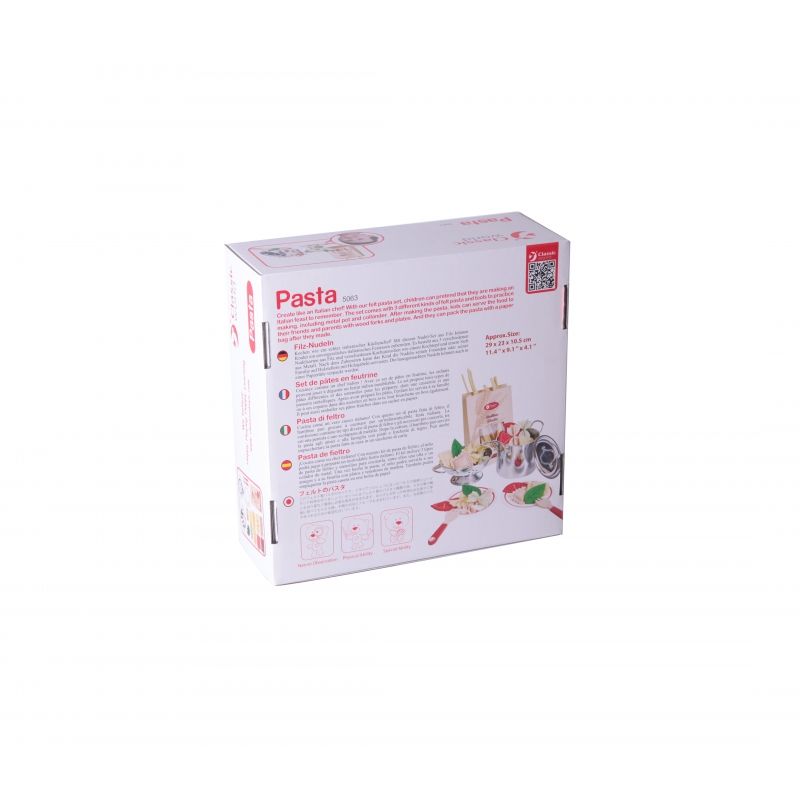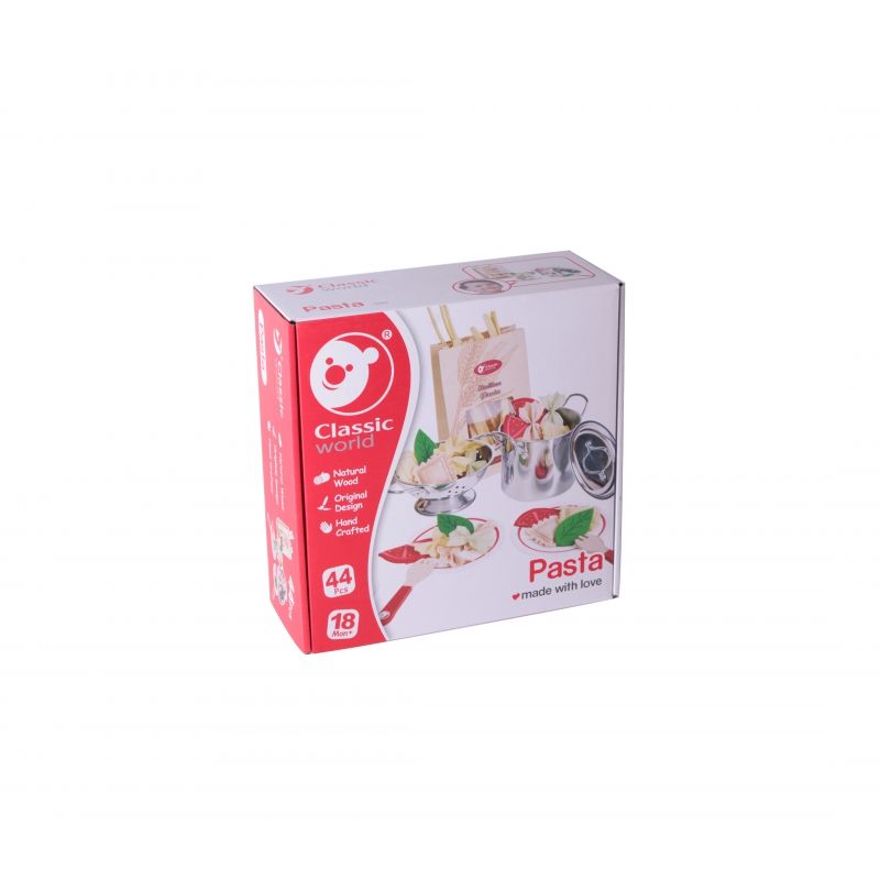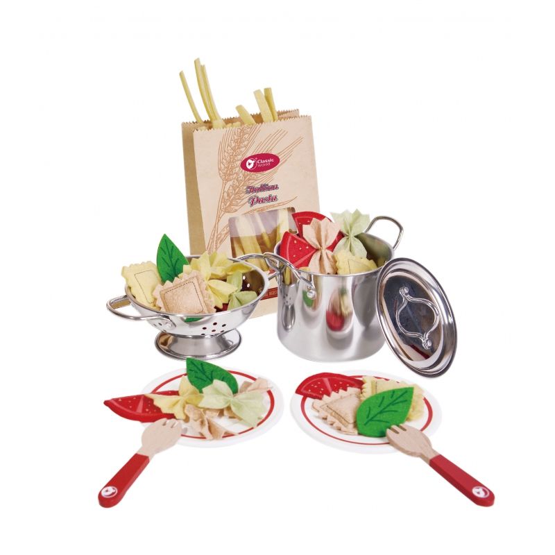Zabawki firmy Classic World cechuje bardzo wysoka jakość wykonania. Są wykonane z najwyższą starannością z trwałych i ekologicznych materiałów i pomalowane bezpieczną dla dzieci farbą. W zestawie znajduje się makaron, garnek, przystawki, cedzak, zestaw talerzy oraz sztućców. Wyjątkowa forma zabawki zapewni doskonałą rozrywkę maluchom!