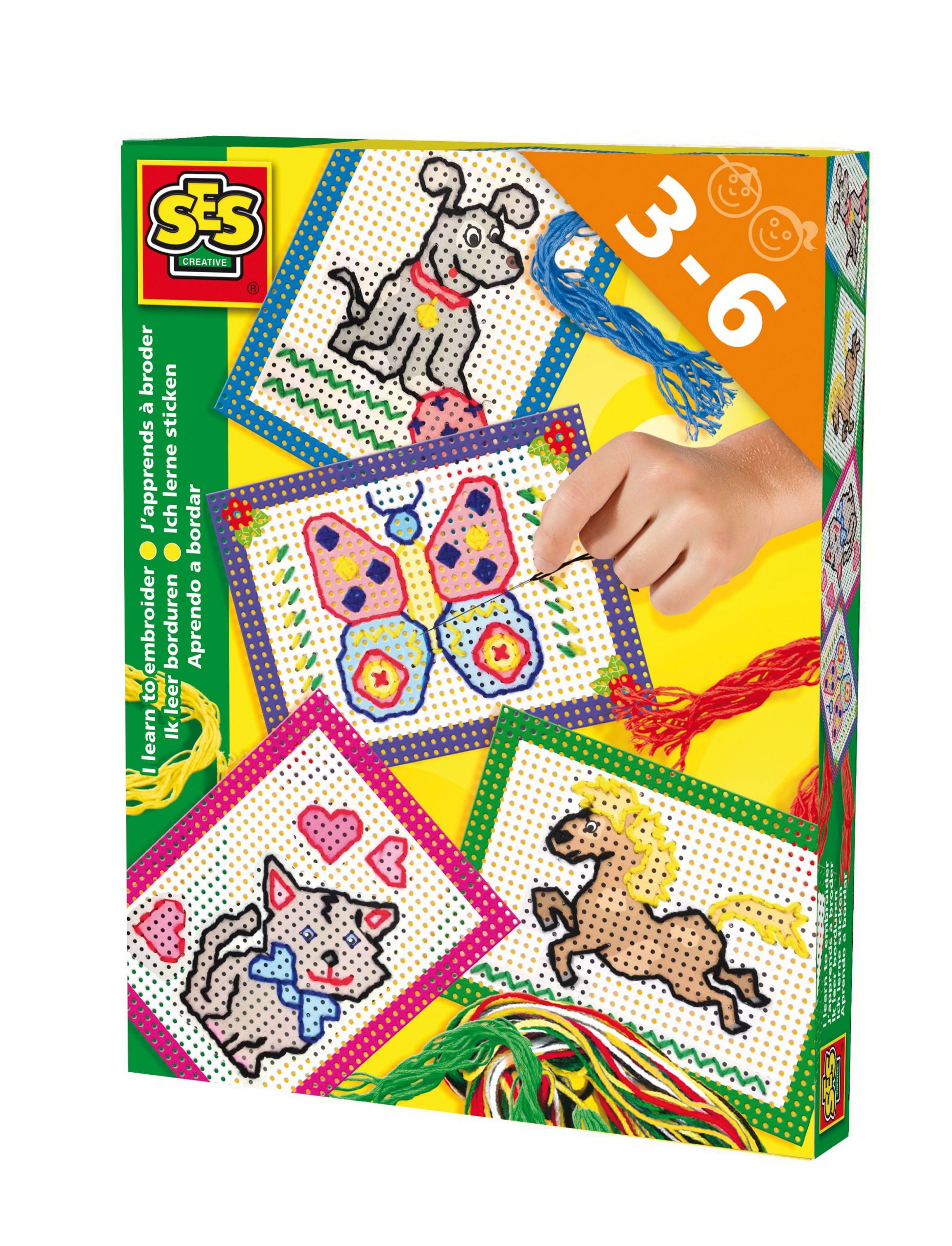 Zestaw do nauki wyszywania to świetny sposób na kreatywną zabawę! Pozwoli on nauczyć się wyszywania w wesołej atmosferze. Dołączona do zestawu igła ma zaokrąglony koniec, więc całość jest bezpieczna dla dziecka. W opakowaniu znajdziesz także 4 plansze ze słodkimi wzorami (piesek, motylek, konik, kotek) oraz kolorowe włóczki.