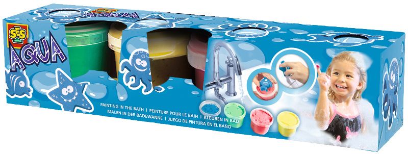 Kąpiel jeszcze nigdy nie była taka przyjemna! Zestaw do zabawy w kąpieli z pewnością przyniesie maluszkowi mnóstwo radości. W opakowaniu znajdziesz cztery farbki (błękitną, zieloną, czerwoną i żółtą) do malowania oraz stempelki w czterech kształtach (rybka, ośmiorniczka, gwiazdka i żółw). Farbki są hipoalergiczne, a do tego bardzo łatwo się je zmywa, także nie trzeba obawiać się bałaganu.