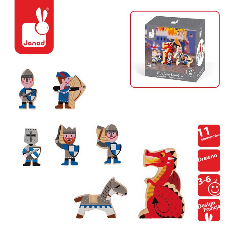 Drewniany zestaw Rycerze jest idealnym przykładem produktu marki JANOD. Doskonałe wykonanie zachęca dziecko do twórczej zabawy, co z kolei korzystnie wpływa na rozwój malucha. Estetyczne opakowanie sprawia, że zabawka doskonale nadaje się na prezent.