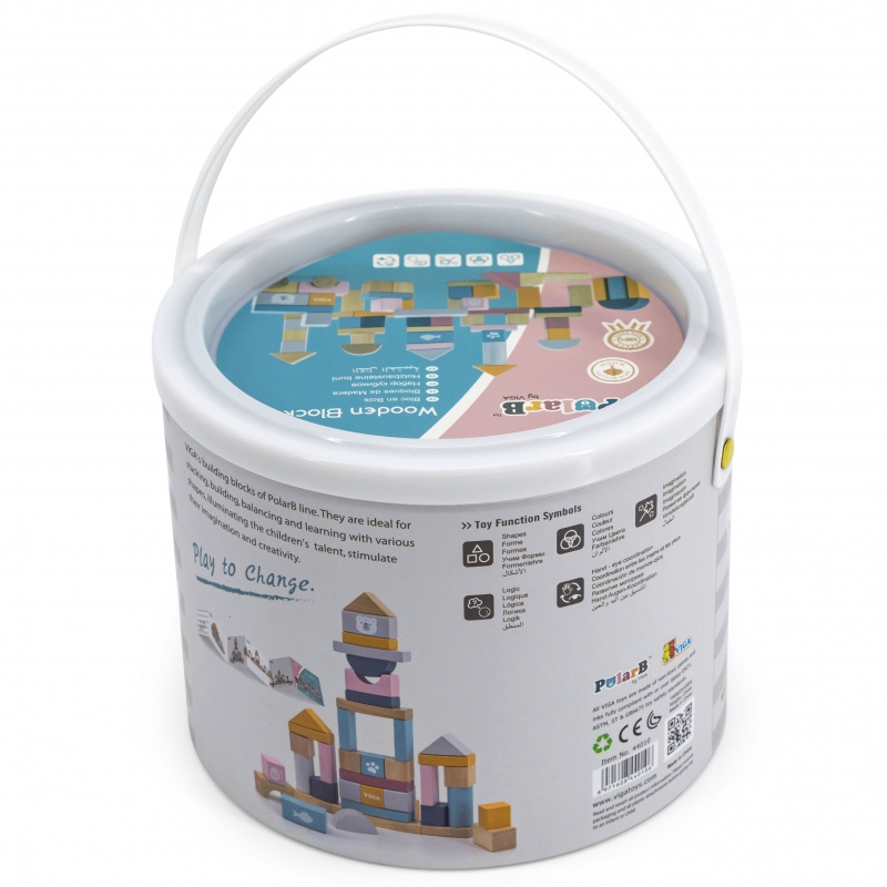 Zestaw drewnianych klocków w wiaderku – 60 elementów PolarB Viga